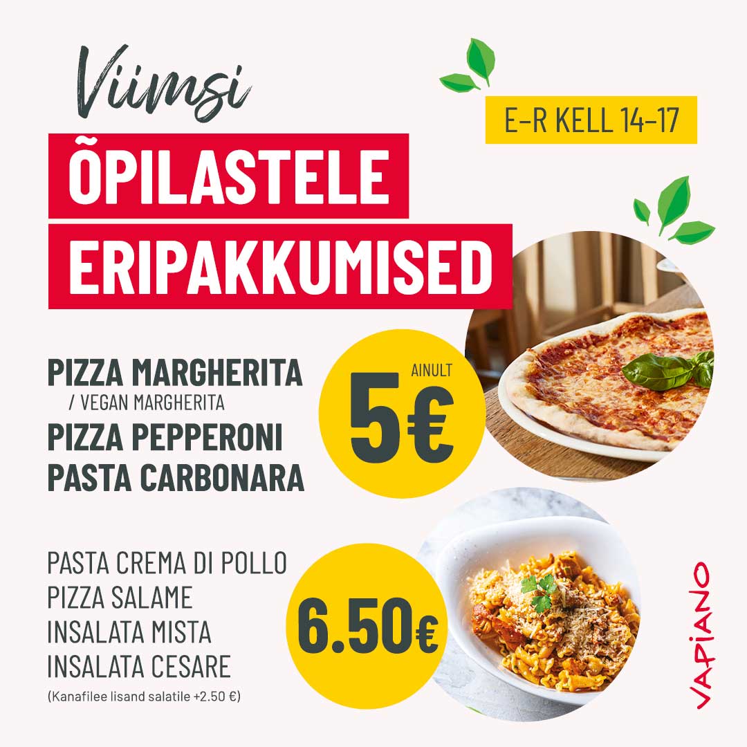 Viimsis õpilastele pizza ja pasta hitid E-R kell 14-17 vaid 5 €