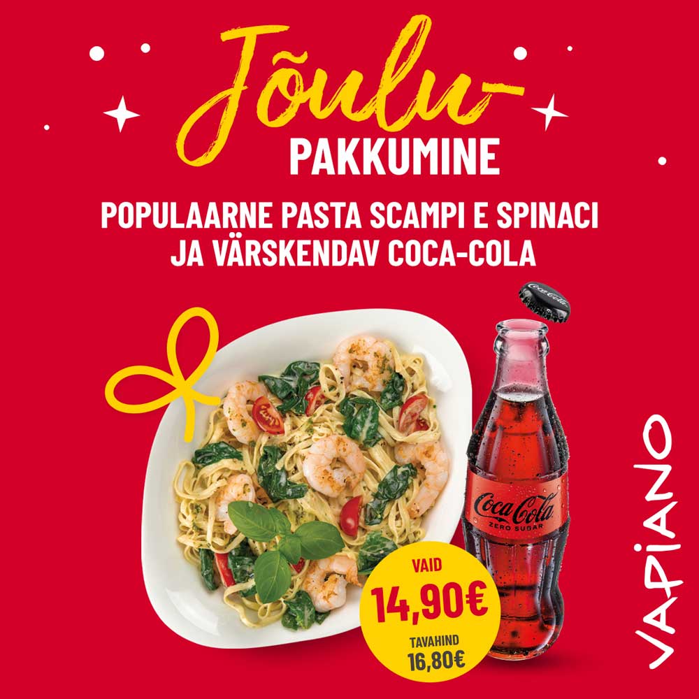 Naudi Vapiano populaarset Pasta Scampi e Spinacit koos värskendava Coca-Cola või Coca-Cola Zeroga – ideaalne pühadekombo!