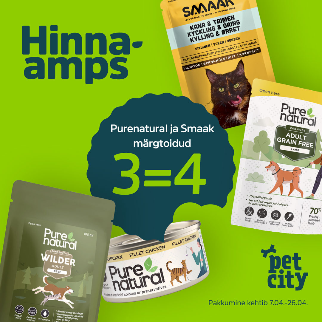 Purenatural ja Smaak toidud 3=4 Vihmajoped -30%Edgard Cooper märg- ja kuivtoidud -25%